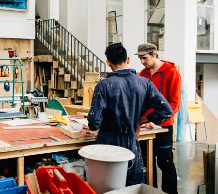 - genauer gesagt in der Ausstattungswerkstatt in der Puchstraße - die neue Ideenschmiede und kreativer Umsetzungsort für nachhaltiges Innenraumdesign